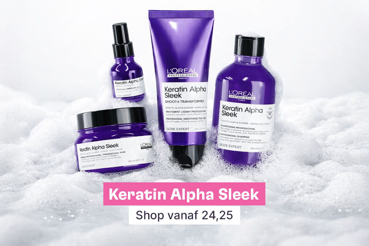 Pluizig of moeilijk handelbaar haar? De Keratin Alpha Sleek lijn van L’Oréal Professionnel helpt het haar te verzorgen, glad te maken en beter onder controle te houden. Ideaal voor iedereen die droomt van een zachte, glanzende en perfect gestylde look.